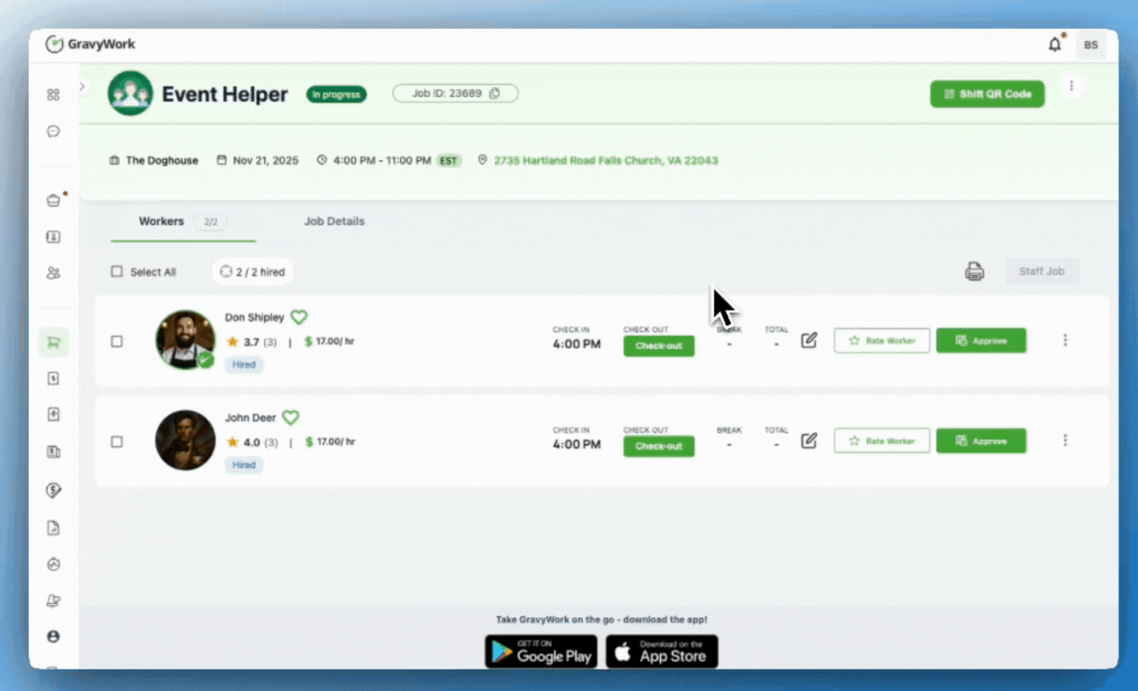 You can now dismiss a worker directly from the job if something is not going right. This includes situations where you are overstaffed, the worker does not meet the requirements, there is a performance concern, or they arrived late.